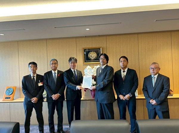 伊藤山口市長に要求書を手渡す松本委員長